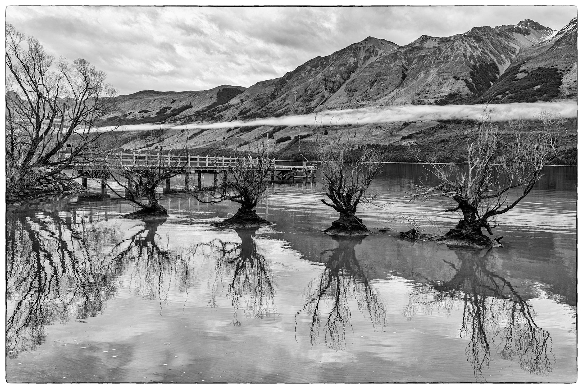 One of the most picture perfect places near Queenstown, New Zealand. This particular self portrait of my wife and me done in black & white, maybe helps deviate from the common pictures you may see of this iconic red barn found in Glenorchy.