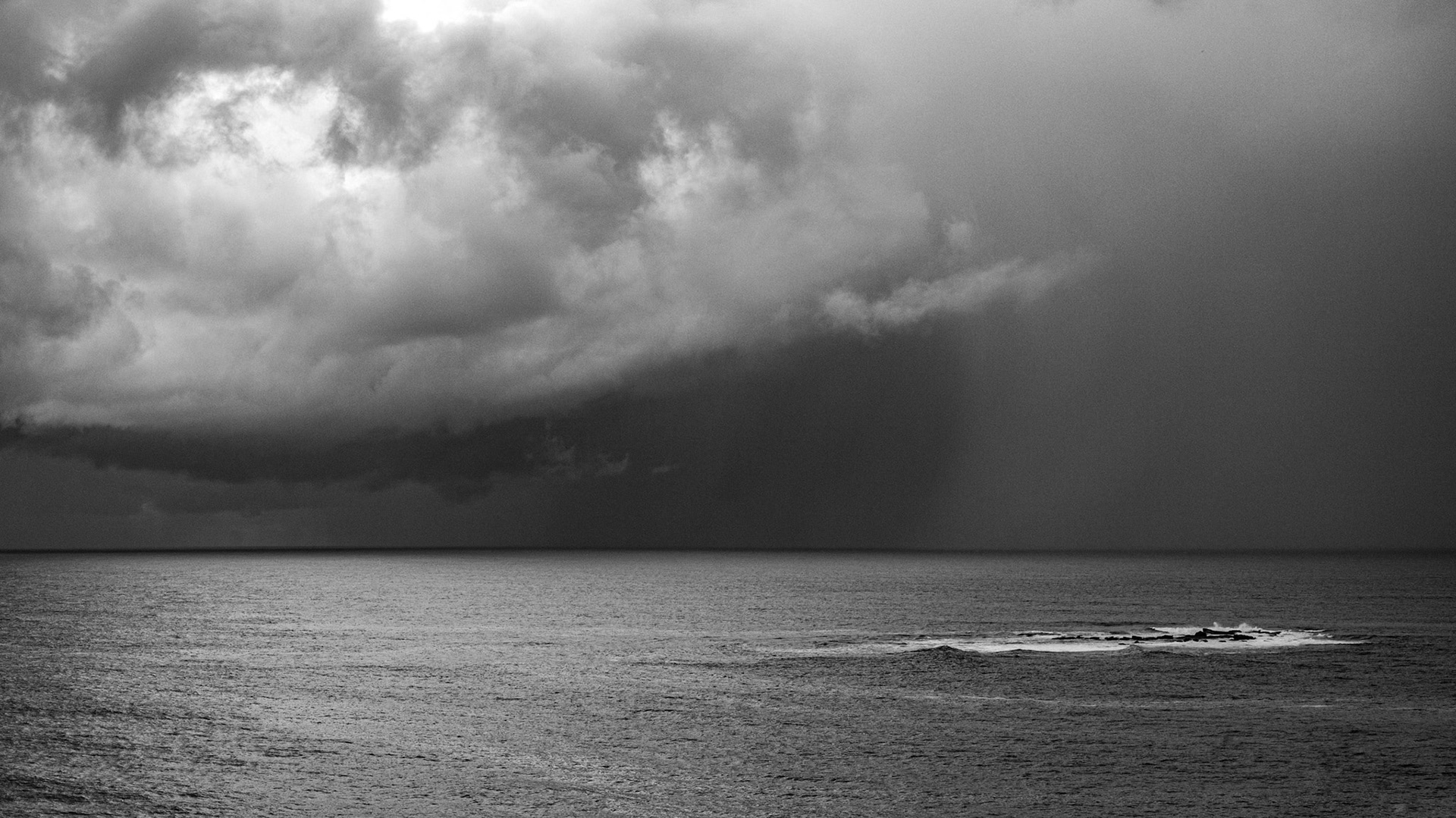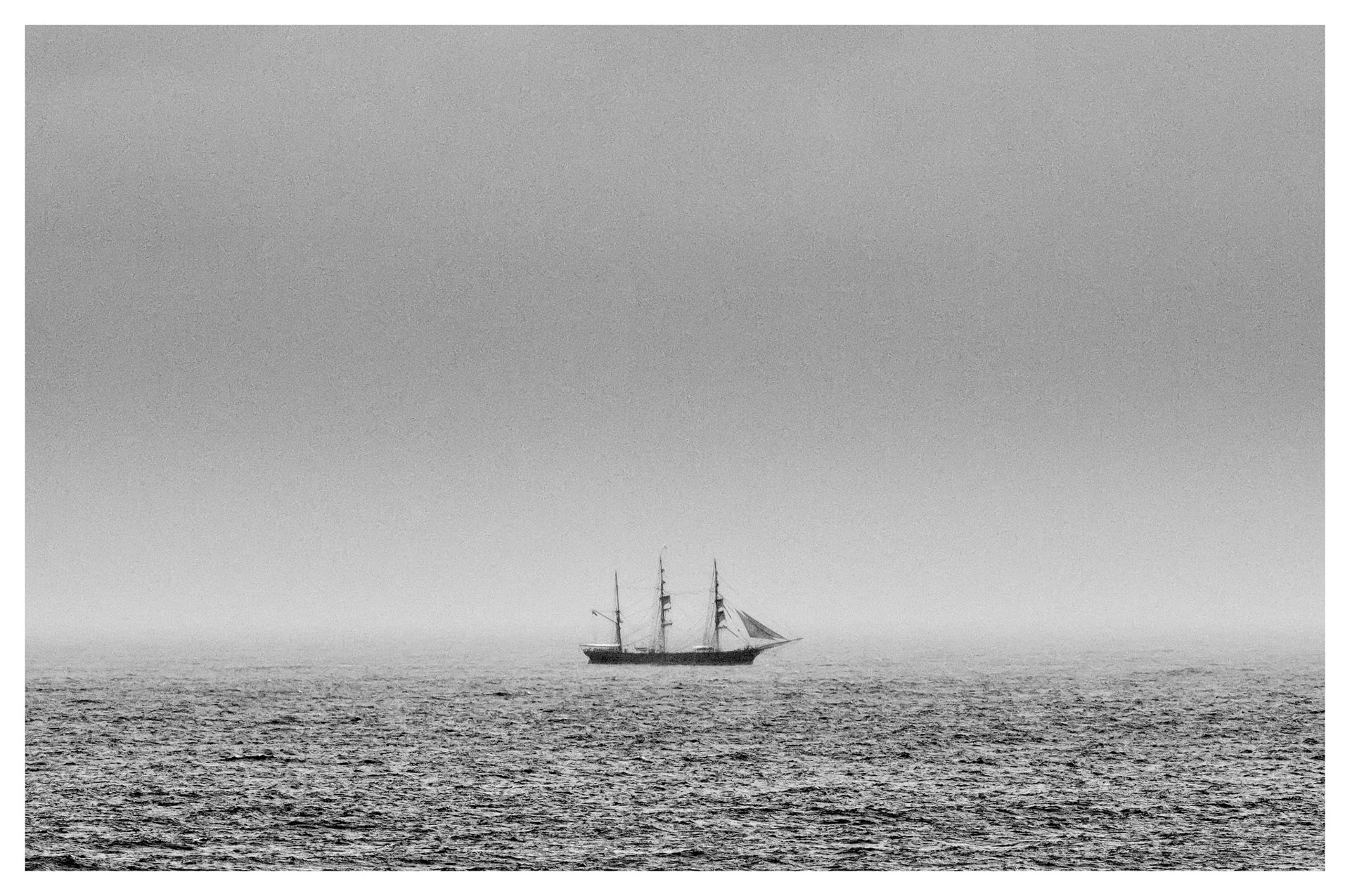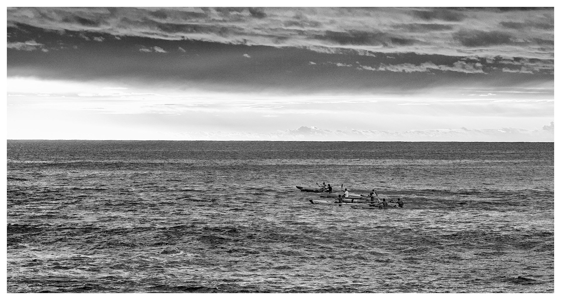 Simplistic capture of this racing boat against the flat horizon and clear sky.