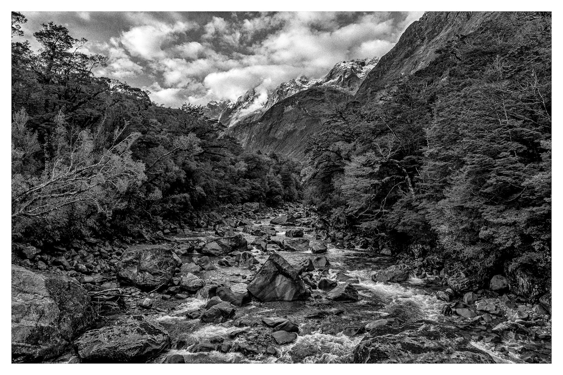 I love finding less known locations and capturing them for enternity and sharing them with others. This 15 second time lapse near Milford Sound, New Zealand helps creates the milky flow of the river set against the motionless natural river rocks. Looks great in color as well.