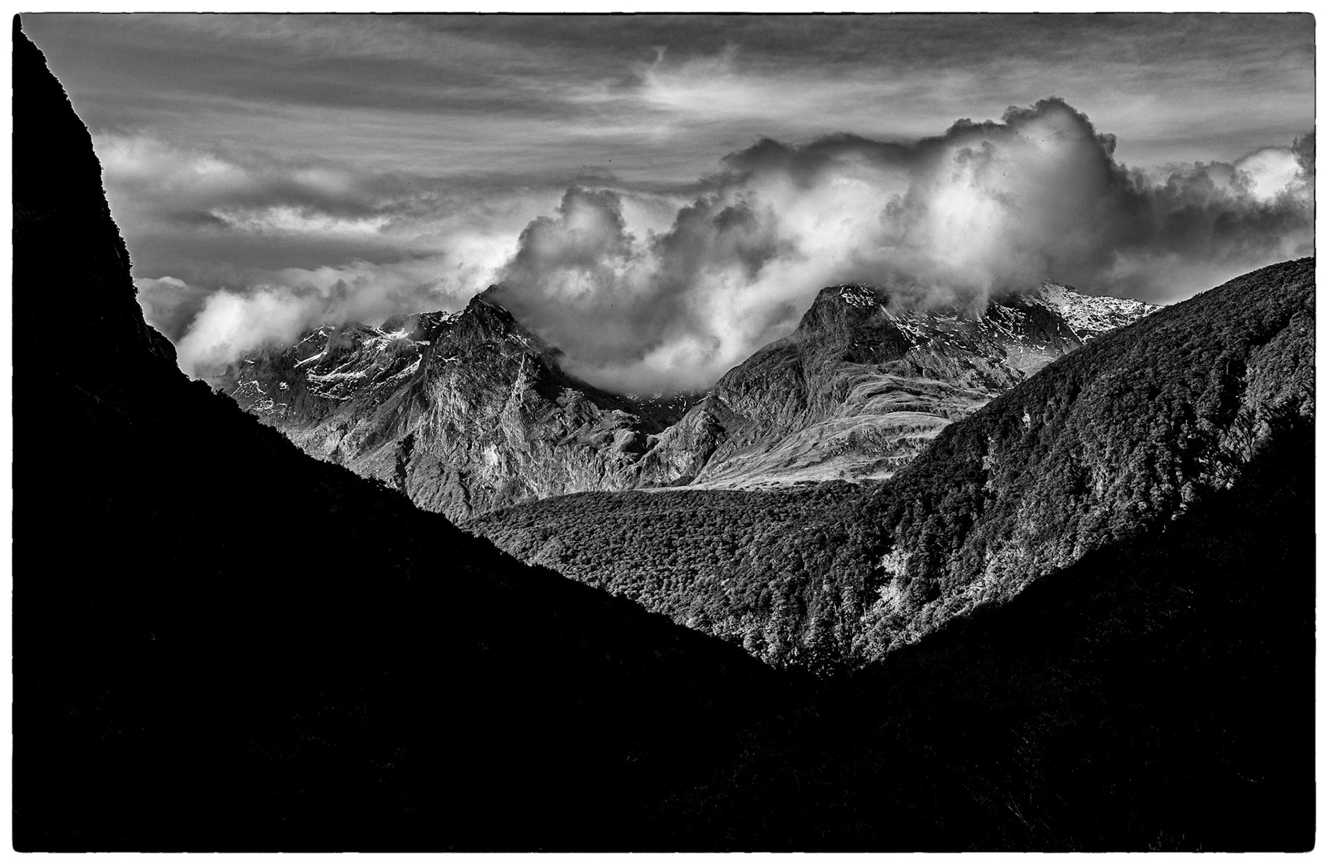 New Zealand offers up some amazing landscapes and Donne Glacier near Milford Sound is a great example. Did a sunrise adventure to the top to capture this one. Did a sunrise adventure to the top to capture this and other black & whites. Also a couple great color photos in the Landscape - Color gallery.
