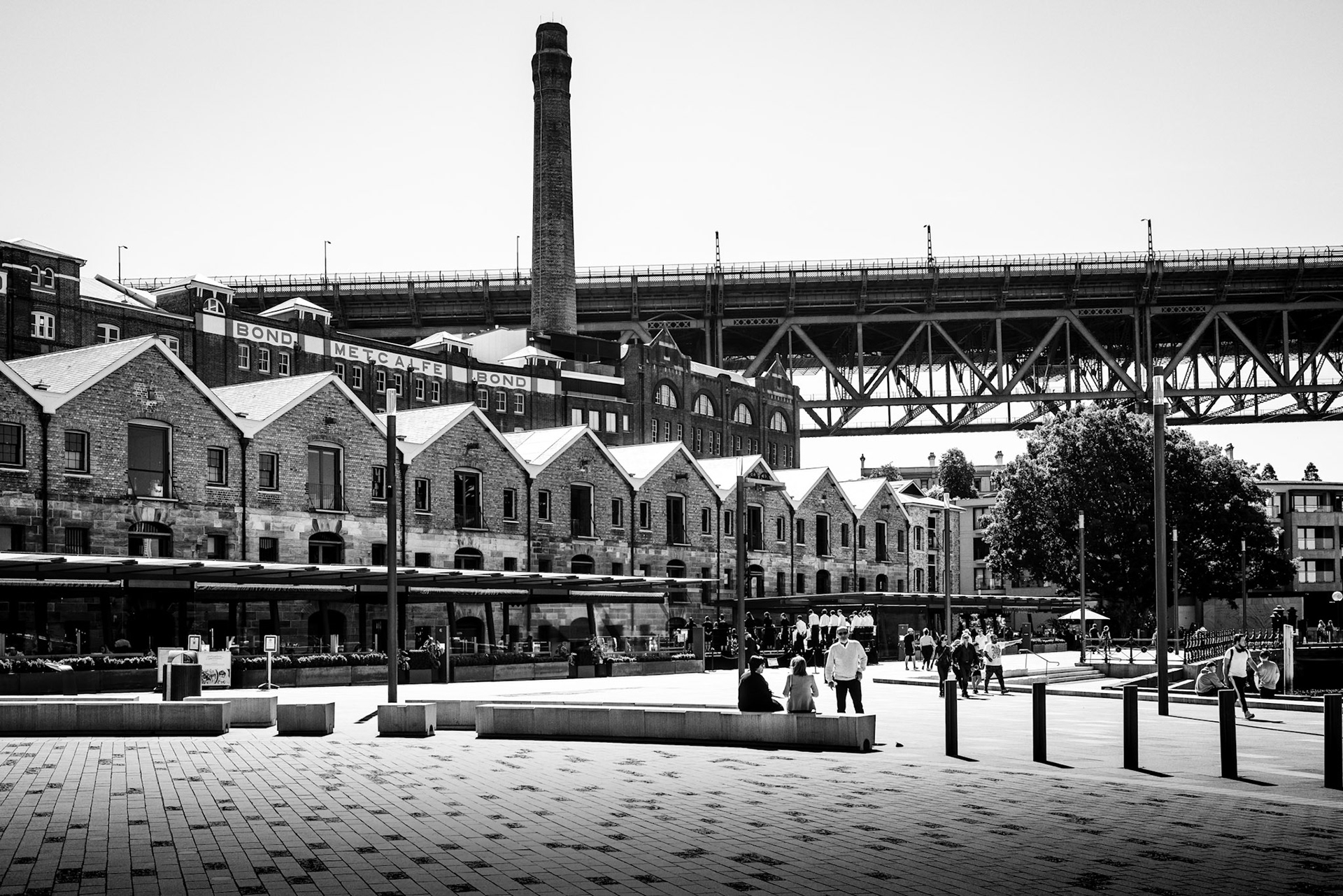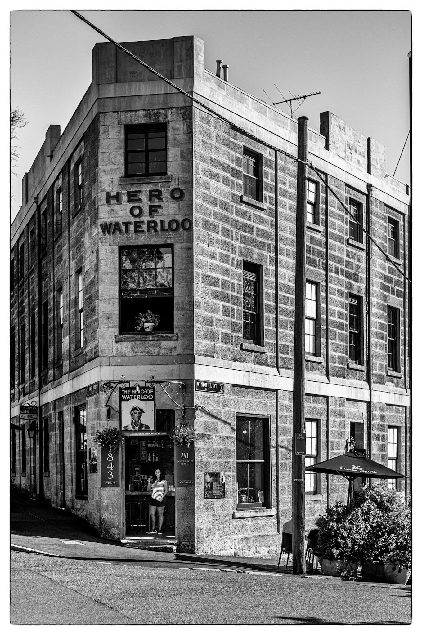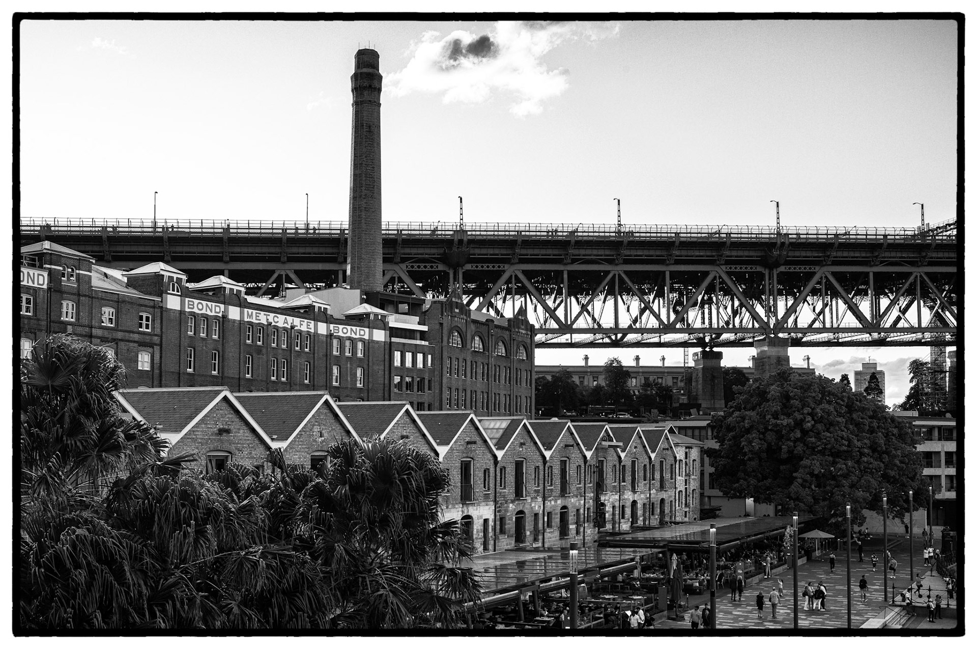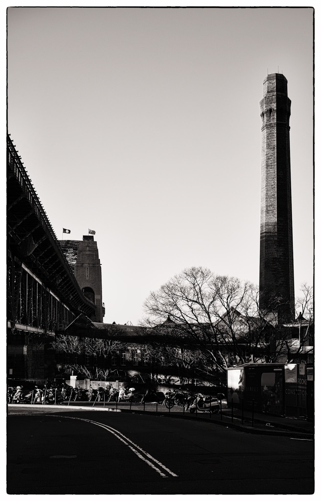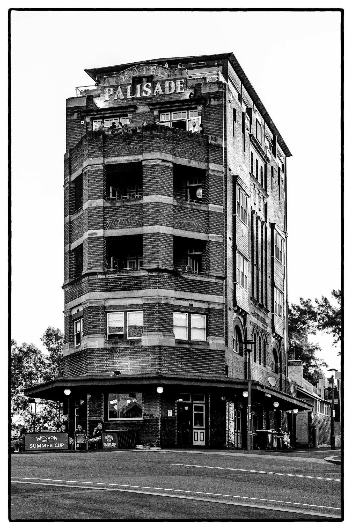 Favourite rooftop bar in Millers Point area of Sydney, Australia. Australian cities are a great blend of historic buildings and new modern architecture. In this case The Palisade was built in 1915-16 and is still a functioning and prominent landmark with it's very tall and narrow expression.
