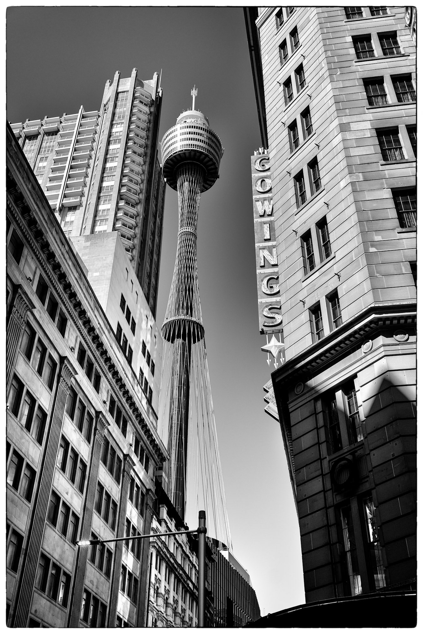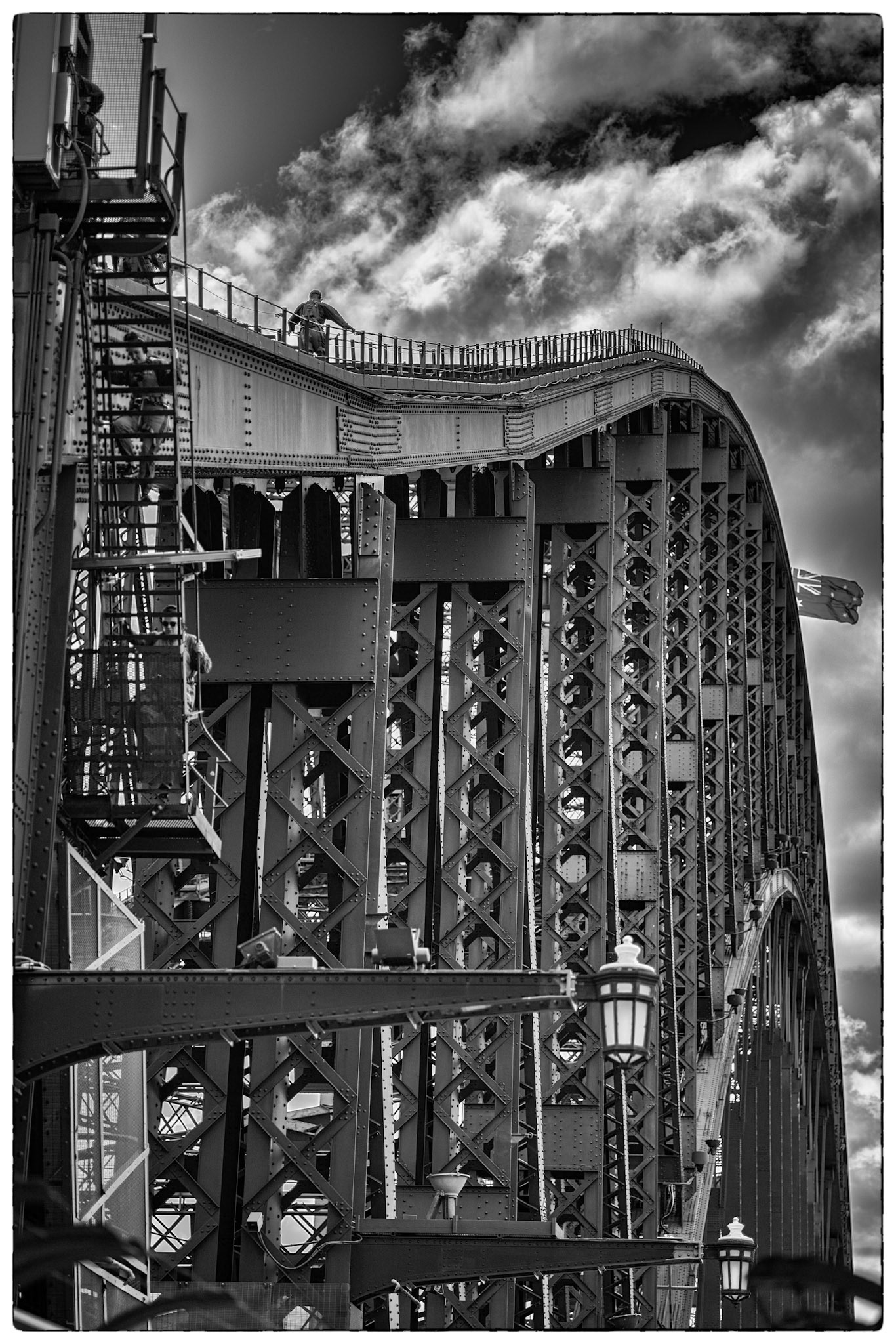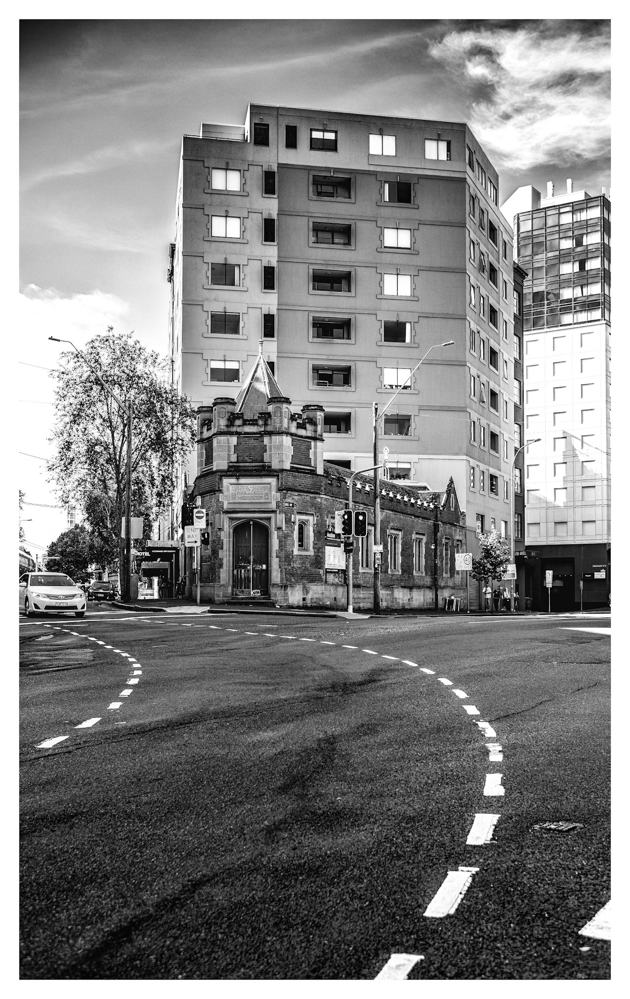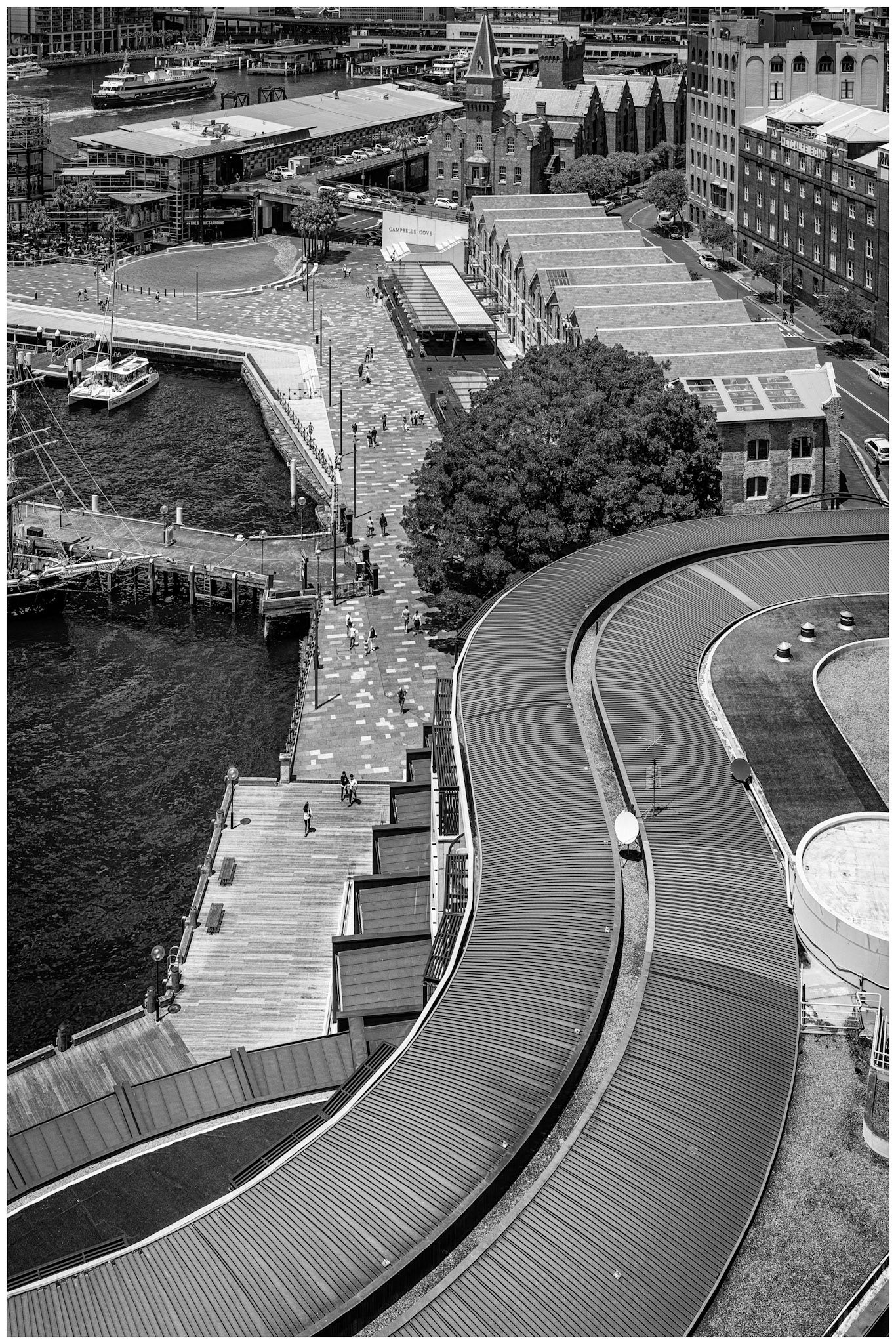 Favourite rooftop bar in Millers Point area of Sydney, Australia. Australian cities are a great blend of historic buildings and new modern architecture. In this case The Palisade was built in 1915-16 and is still a functioning and prominent landmark with it's very tall and narrow expression.