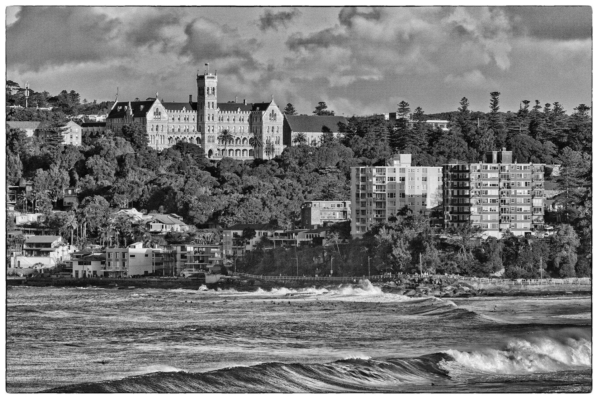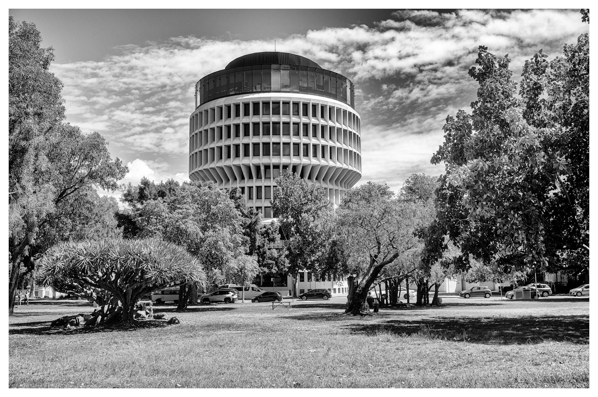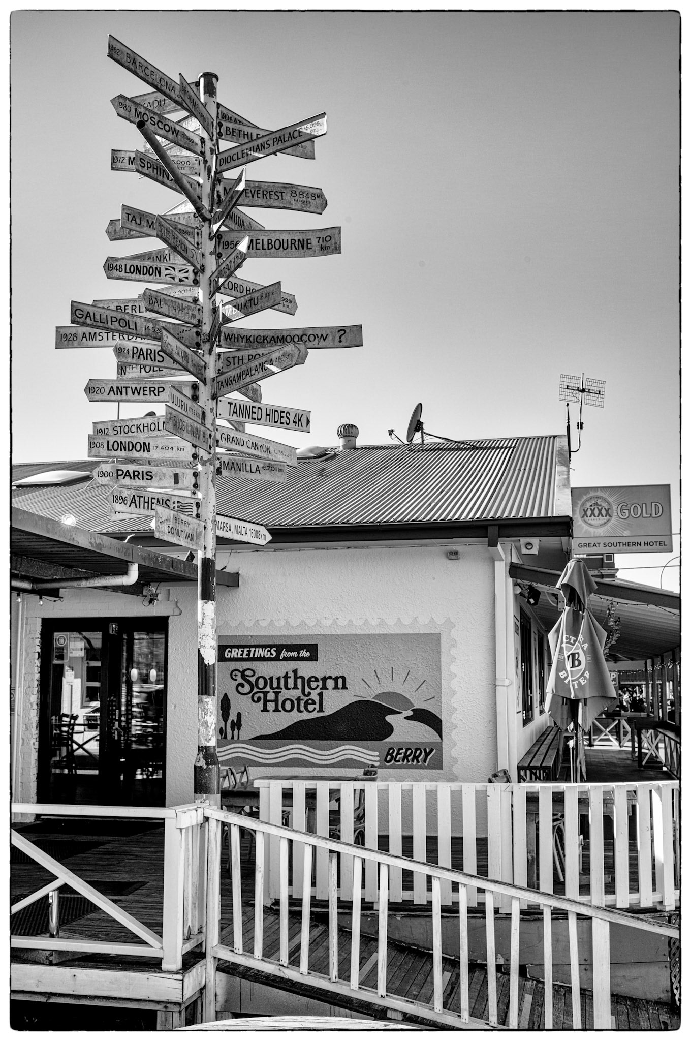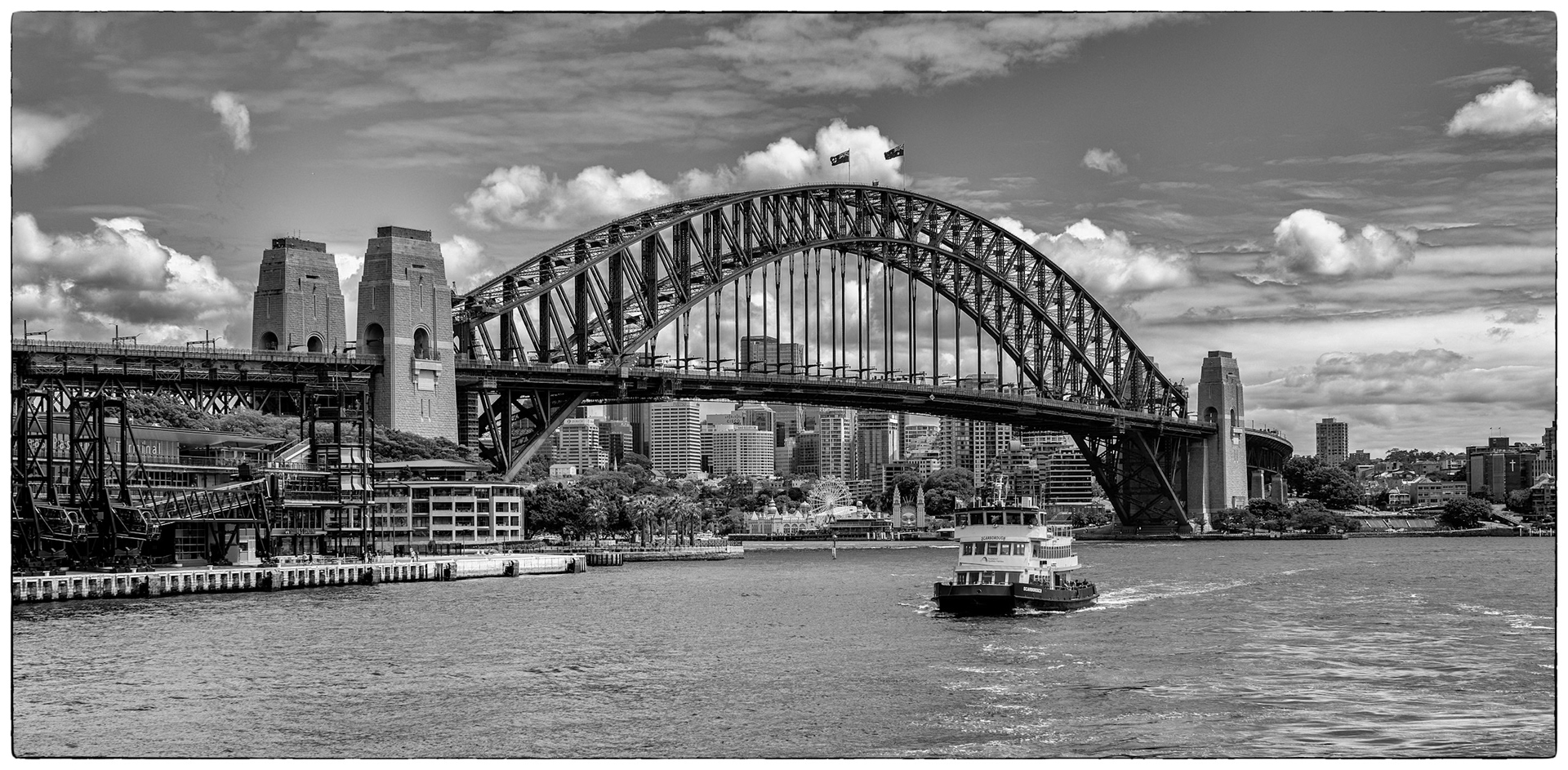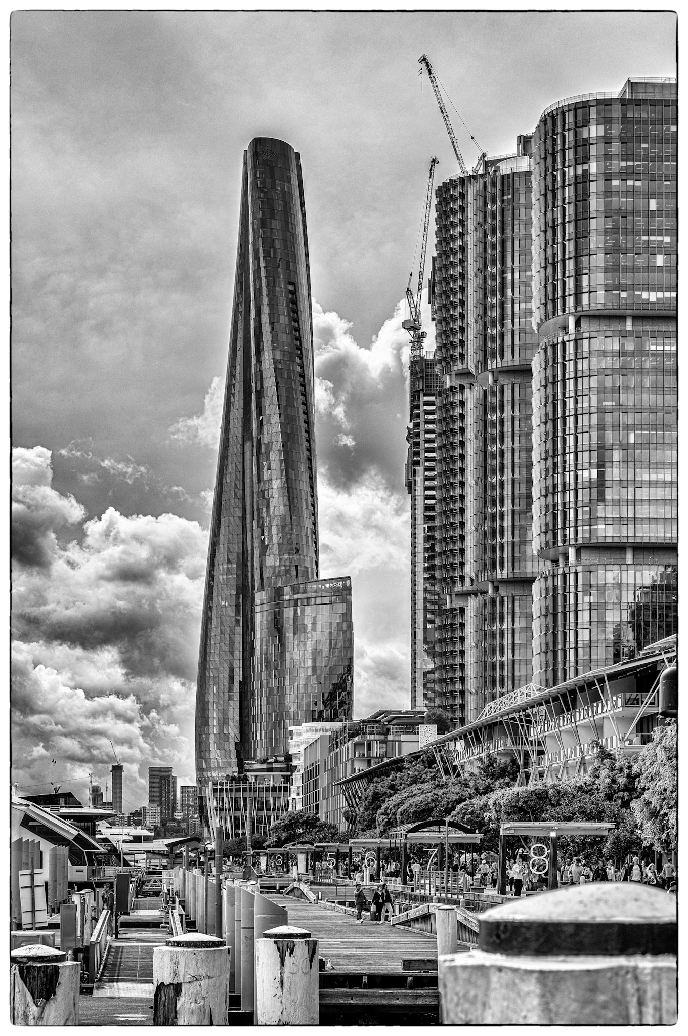 Favourite rooftop bar in Millers Point area of Sydney, Australia. Australian cities are a great blend of historic buildings and new modern architecture. In this case The Palisade was built in 1915-16 and is still a functioning and prominent landmark with it's very tall and narrow expression.